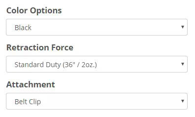 Many of our products have different options to choose from including different colors, retraction forces and attachments. Choose the options that work best for you.
